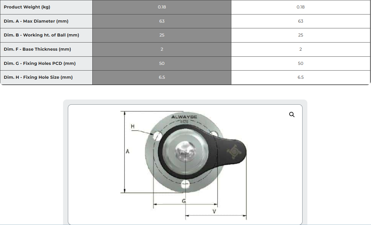 Cada Kit inclui 4 esferas ( 2 livres e 2 c/ travão ). Esfera em aço carbono, diametro 19 mm.